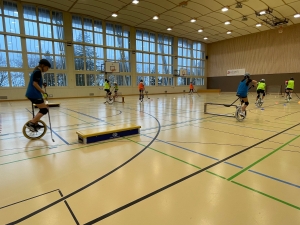 Einrad Winterlager Vom 06. – 07. Dezember 2025 trainierten die Einradhockeyaner*innen, die Einradhockey Nachwuchs-Nationalmannschaft sowie die Einradhockey Nationalmannschaft im Einrad Winterlager in Magglingen.