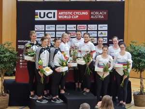 Für die vier Weltmeisterinnen war es ihr erster Weltcup und auch zugleich ihr erster Wettkampf im Weltmeistertrickot was sich sicherlich auf die Nervorsität auswirkte. Auch sie konnten ihre neue Kür nicht fehlerfrei durchziehen und konnten sich knapp vor ihren Kolleginnen aus der Schweiz auf den dritten Platz hinter den beiden Deutschen Mannschaften aus Deutschland einreihen und konnten 70 World Cup.